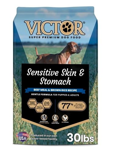 The Food we use here: Victor sensitive skin and stomach Adults & Puppies. We start off with the wet lamb food and then transition to the Beef hard food.